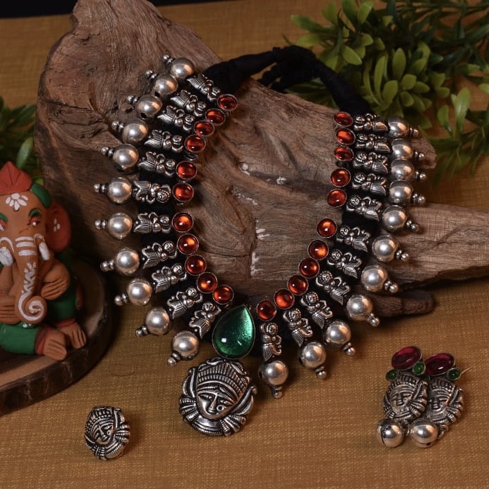 Beautiful german silver haram comes with pressing nose pin and earrings.